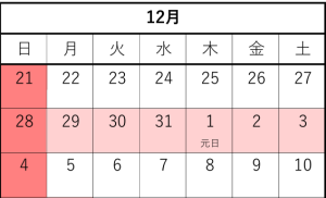 ※12月28日(日)~1月4日(日) 休業